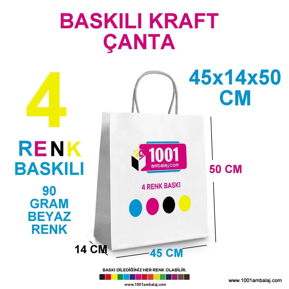 4 Renk Baskılı 45X14X50 Cm 90 Gr Kraft kağıt Çanta Beyaz Renk