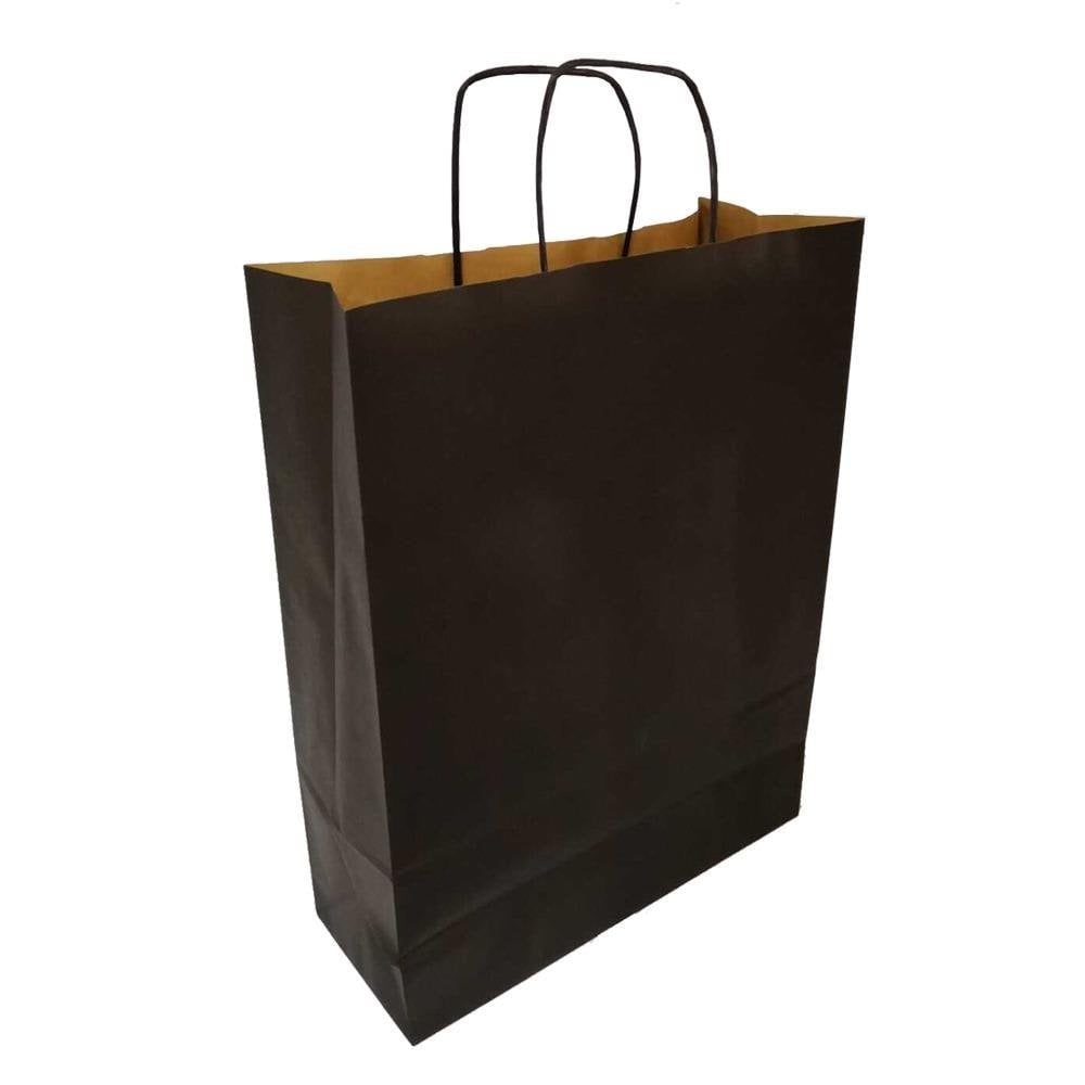 Kraft Kağıt Çanta 32 x 12 x 41 cm Dışı Siyah İçi Kraft Sapı Siyah Burgu 90 Gram (100 Adet) 1001 Ambalaj